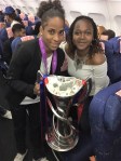 C’est grâce à une invitation de Wendie Renard que je m’envolais donc pour l’Italie ce jeudi afin de vivre une journée mémorable. Journée qui avait une saveur toute particulière car j’ai toujours rêvé d’assister à une finale de Ligue des champions et encore plus d’y voir jouer la joueuse que j’admire le plus… Match tout particulier car il me rappelait la première fois où j’avais rencontré Wendie Renard, c’était il y a 4 ans lors de la dernière victoire de l’OL en Ligue des champions. J’étais venue à Lyon voir un match des garçons mais aussi toutes les joueuses de l’OL lors d’une séance de dédicaces où elles présentaient le trophée. J’avais fait plus d’une heure de queue sous la pluie pour pouvoir approcher ces filles, faire une photo avec Wendie et voir la coupe…