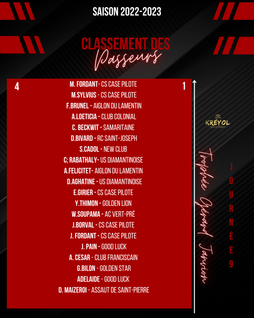 CLASSEMENT DES PASSEURS