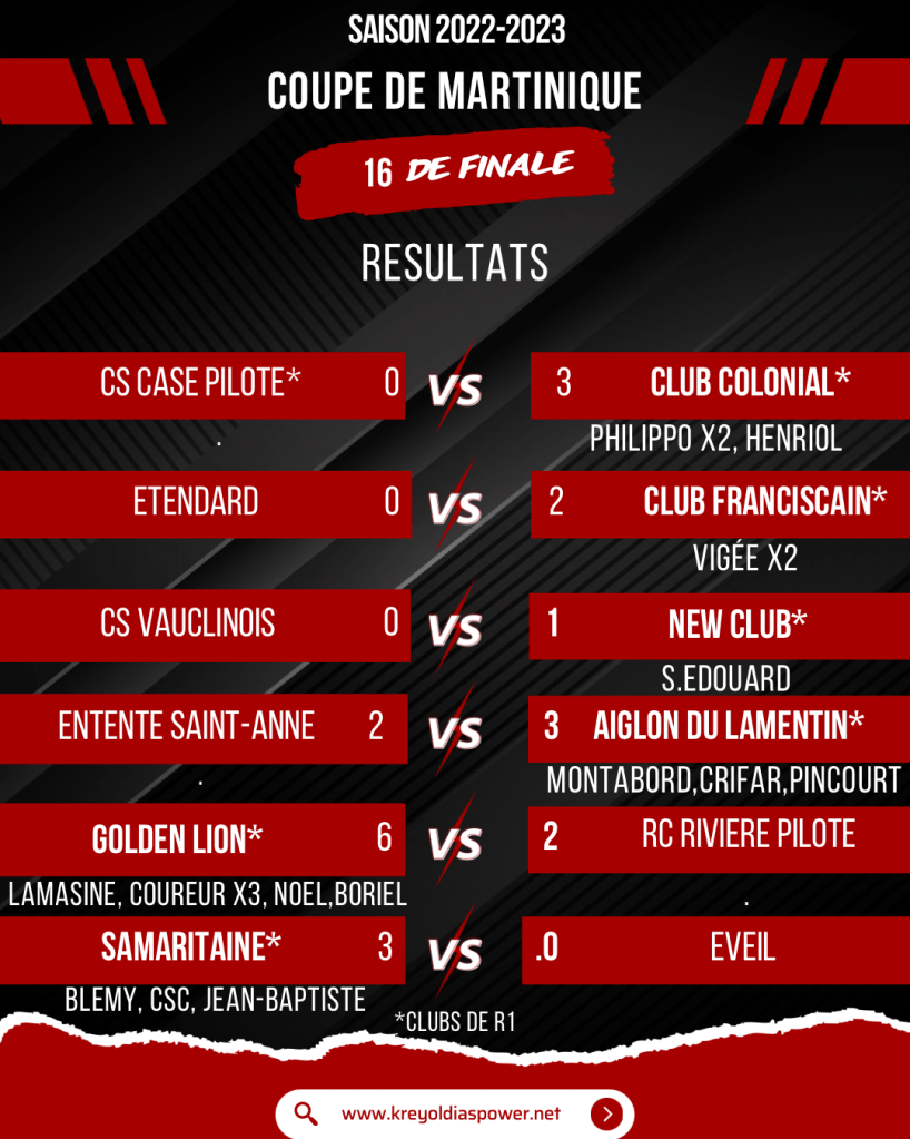 - CS Vauclinois 0-1 New Club