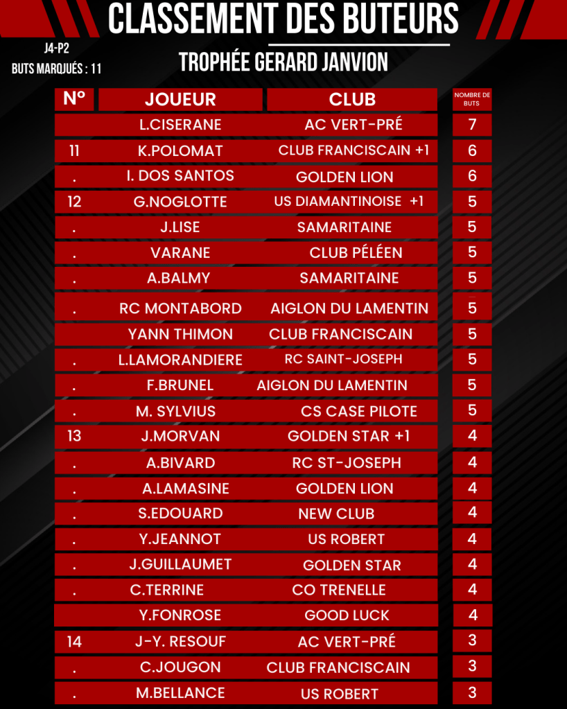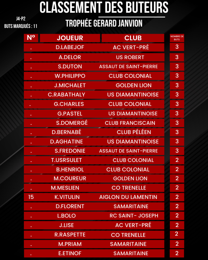 [ Kréyol Football ] : Classement des buteurs :K.REUPERNE termine la phase aller en tête !