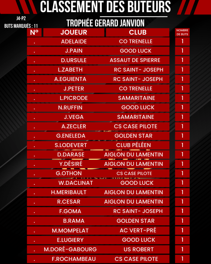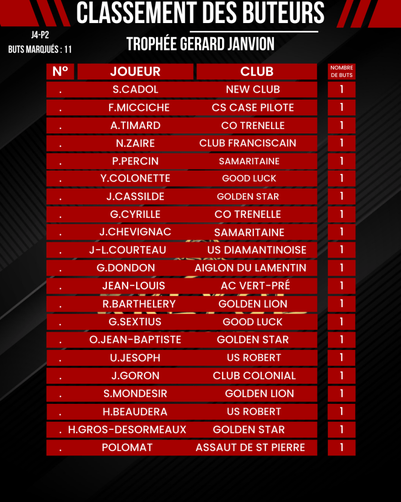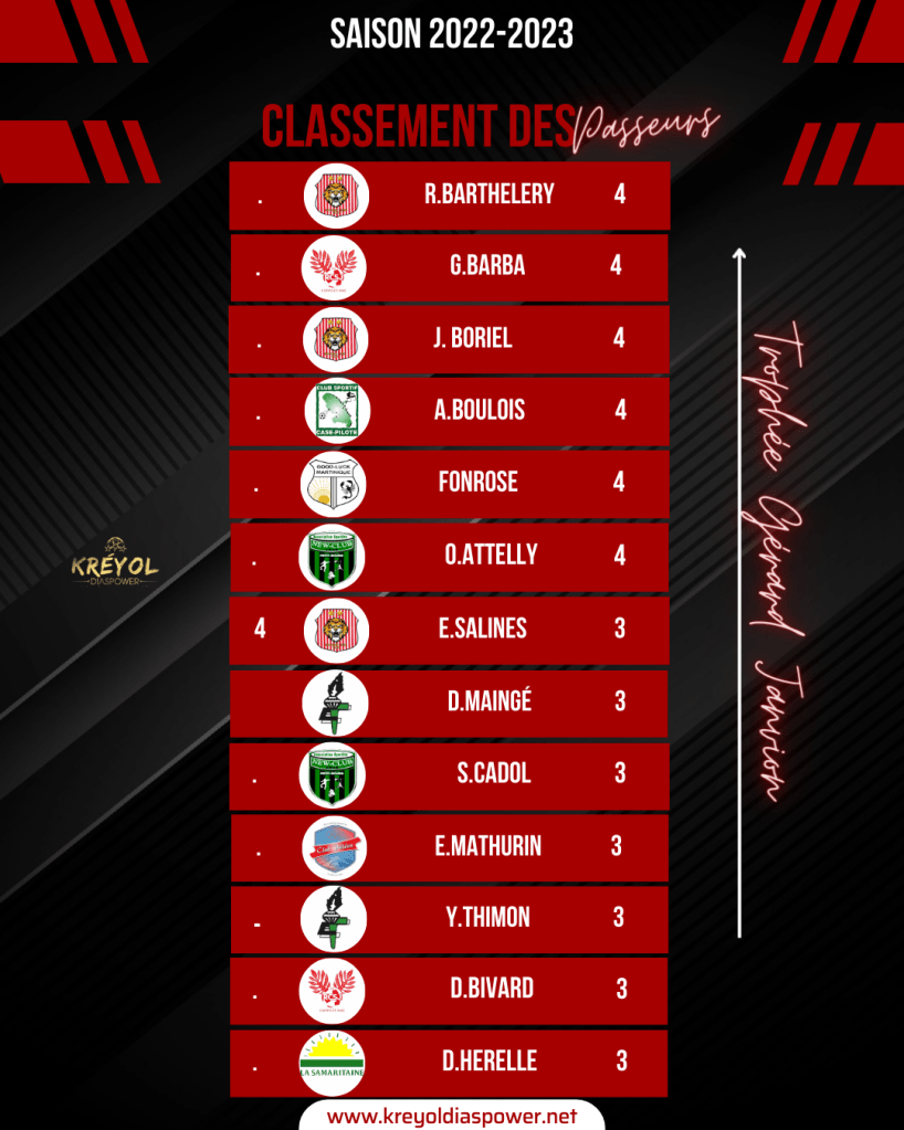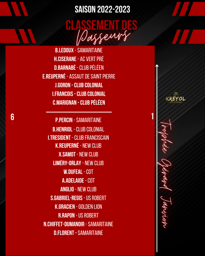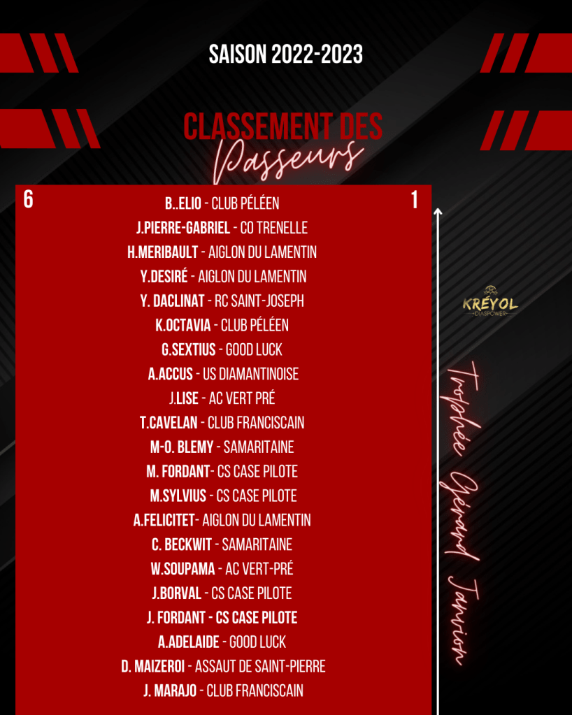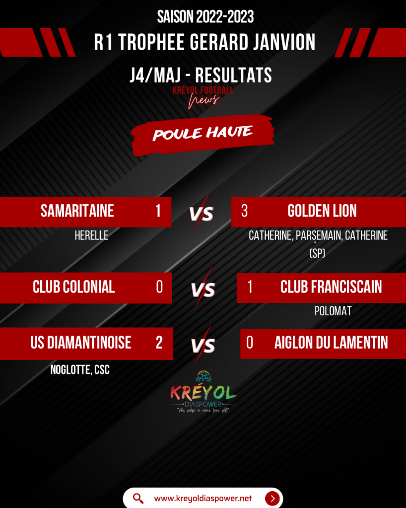 Retrouvez tous les résultats du weekend en Régional 1 ainsi que les classements des buteurs et passeurs KREYOL DIASPOWER !