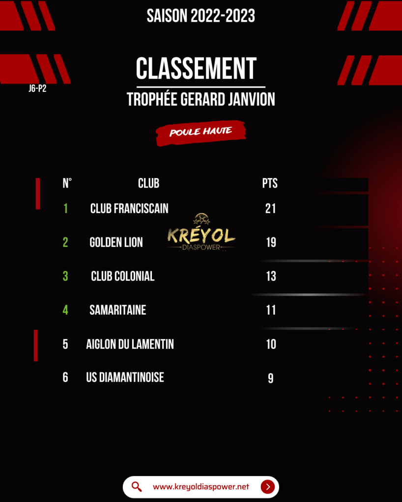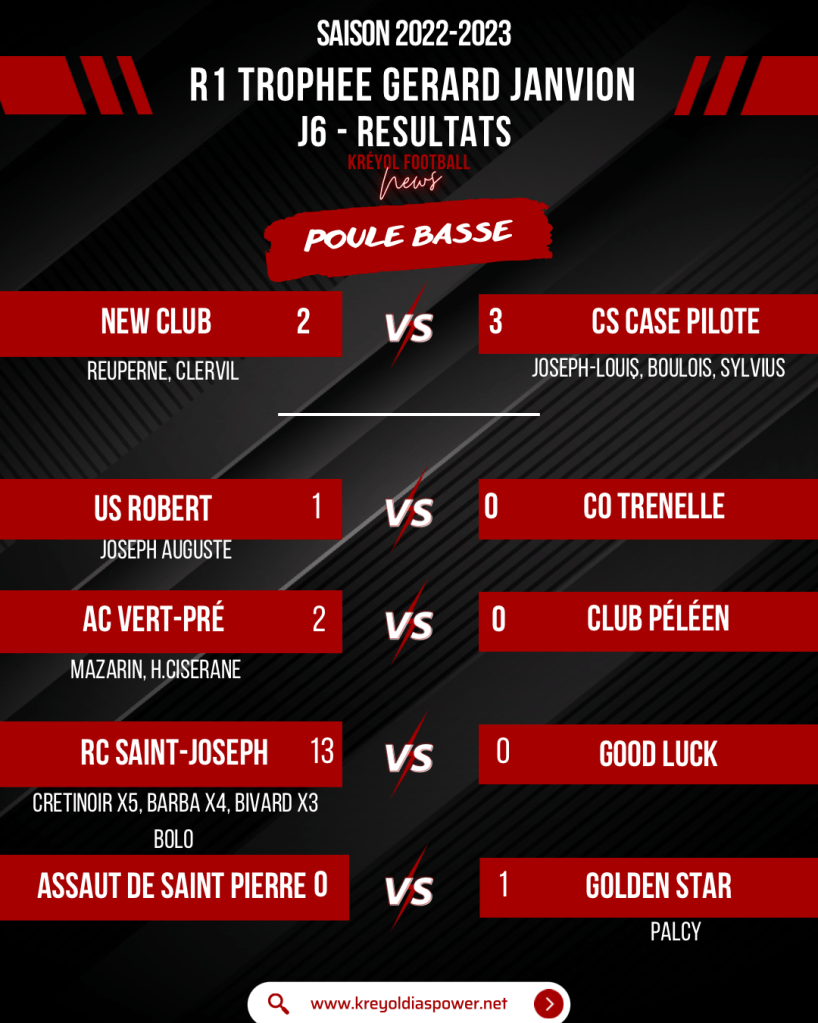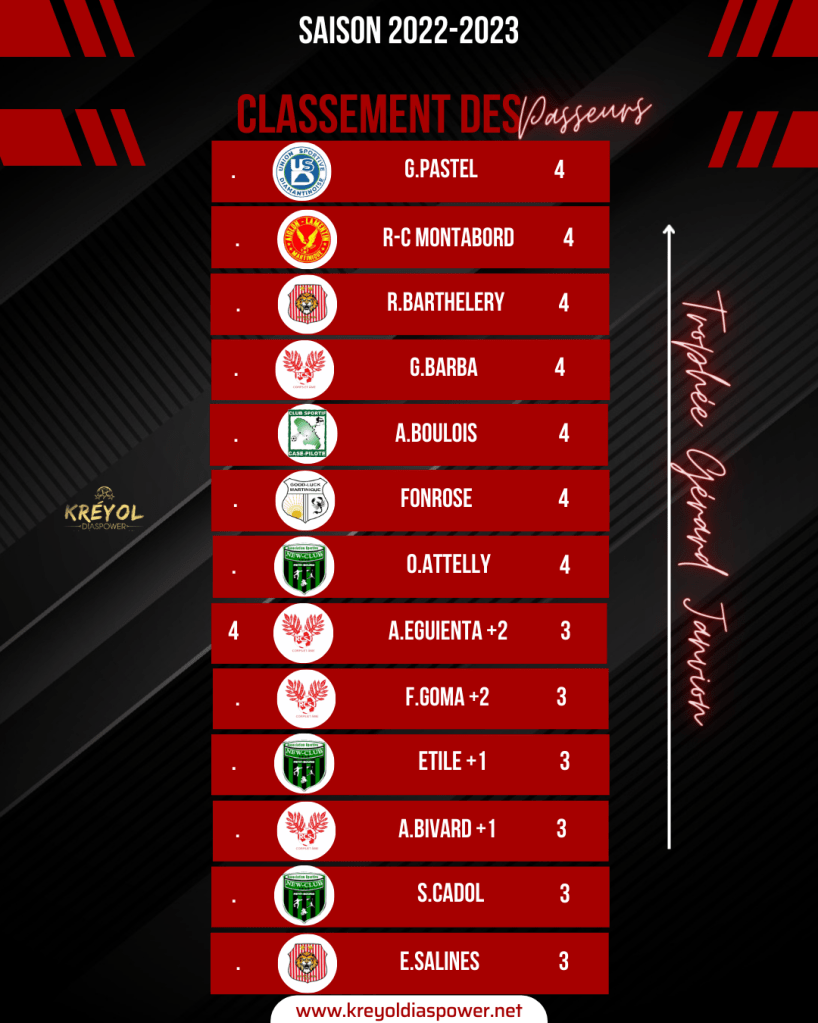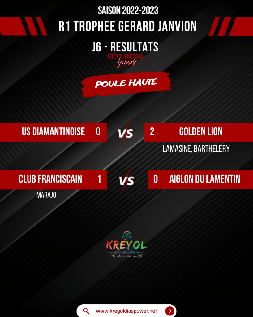 Retrouvez tous les résultats du weekend en Régional 1 ainsi que les classements des buteurs et passeurs KREYOL DIASPOWER !