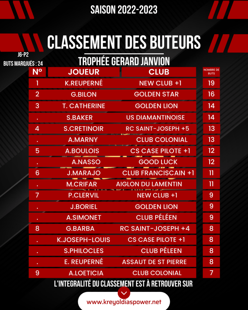 [ Kréyol Football ] : Classement des buteurs :K.REUPERNE toujours en tête !