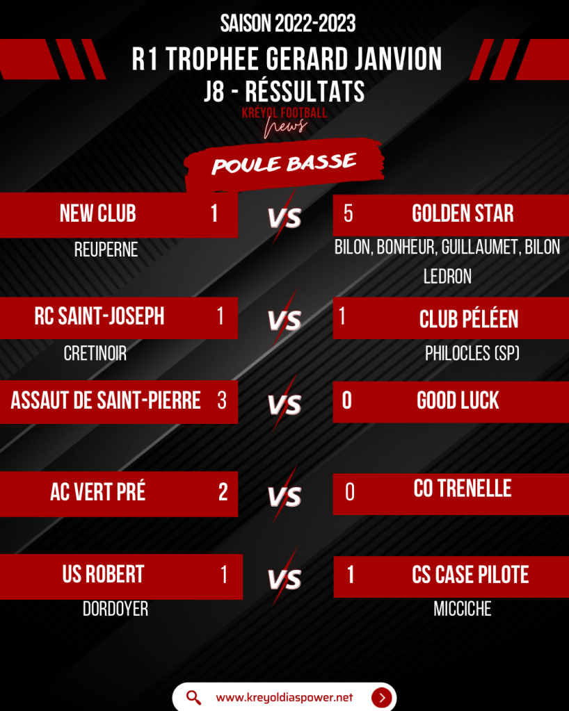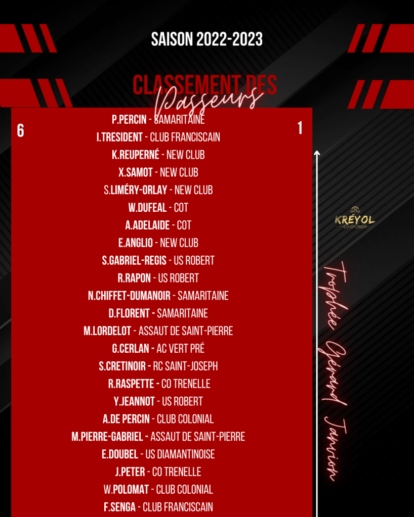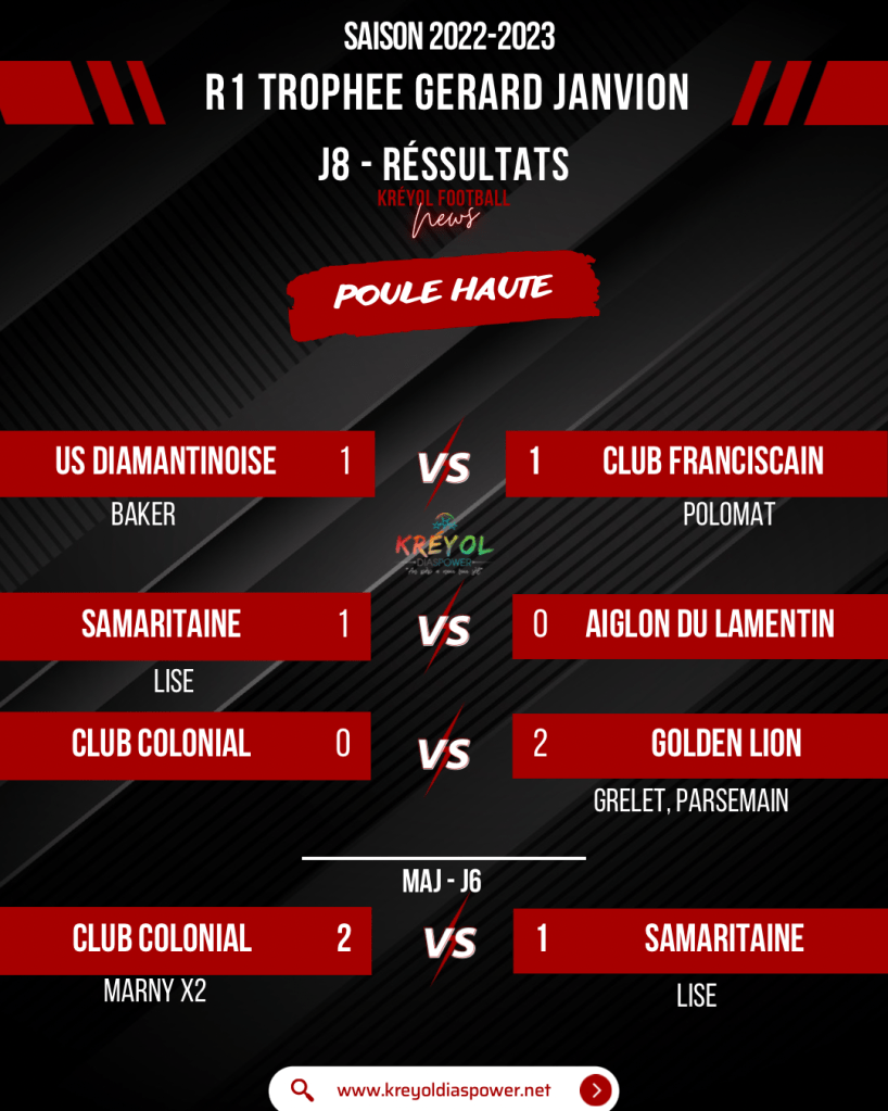 Retrouvez tous les résultats du weekend en Régional 1 ainsi que les classements des buteurs et passeurs KREYOL DIASPOWER !