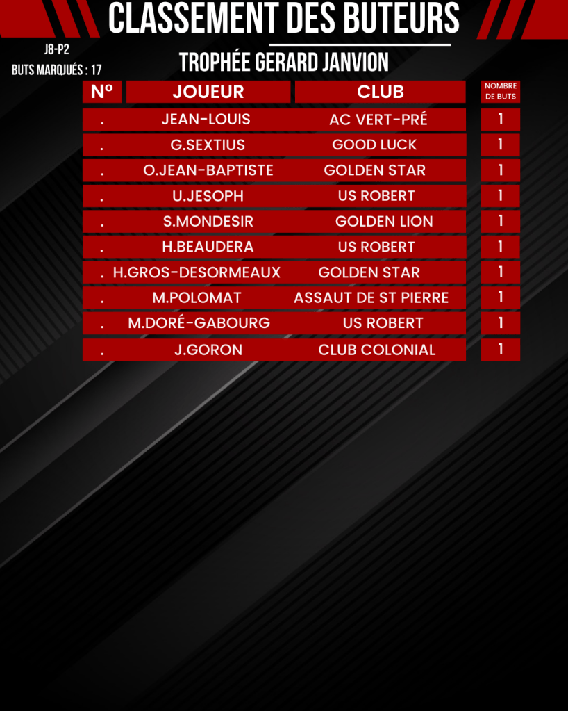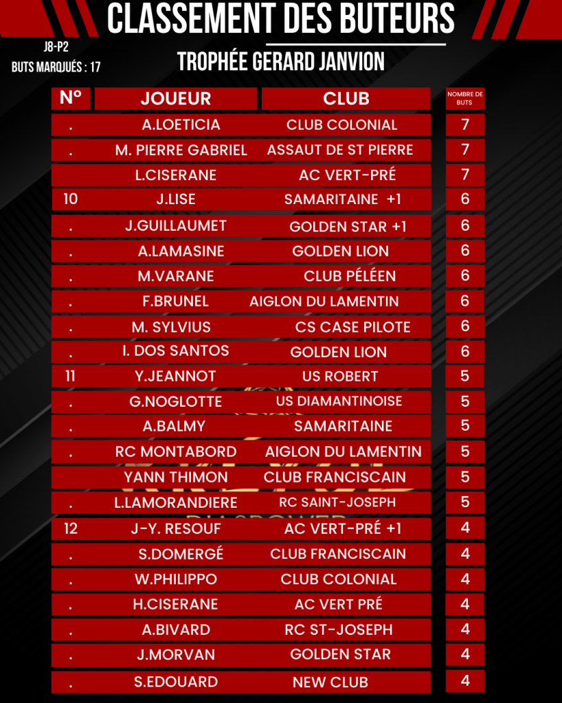 [ Kréyol Football ] : Classement des buteurs : du mouvement en tête !