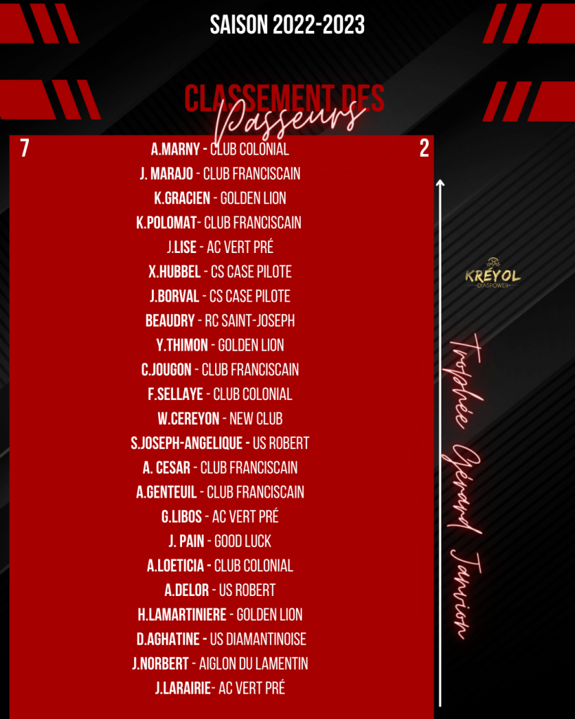 [ Kréyol Football ] : Classement des buteurs et passeurs à une journée de la fin !