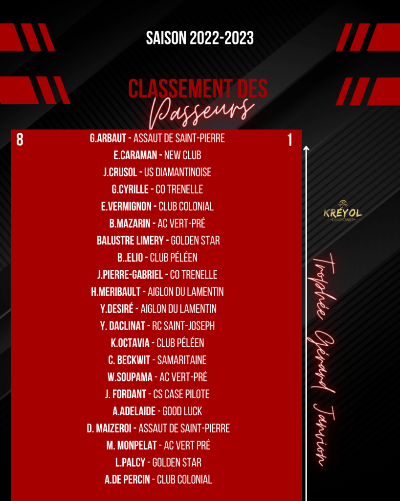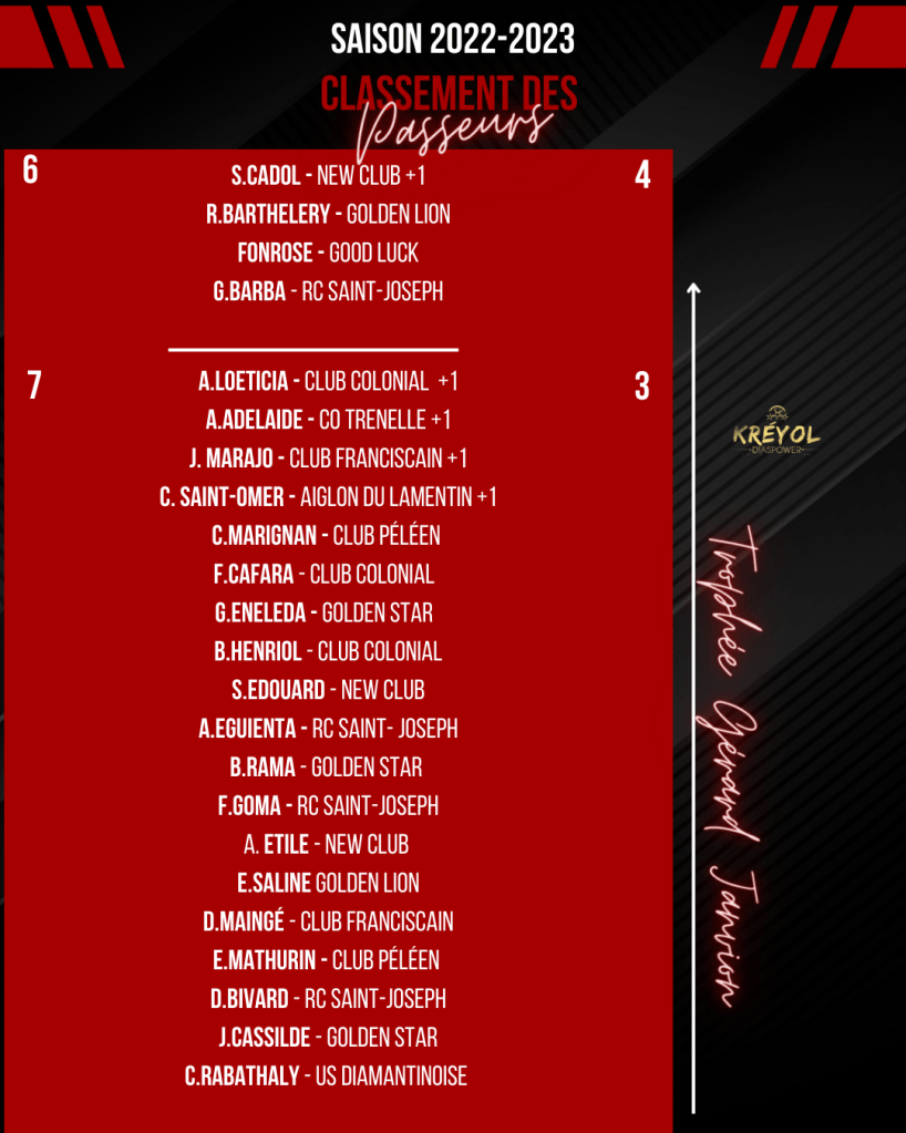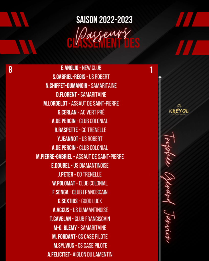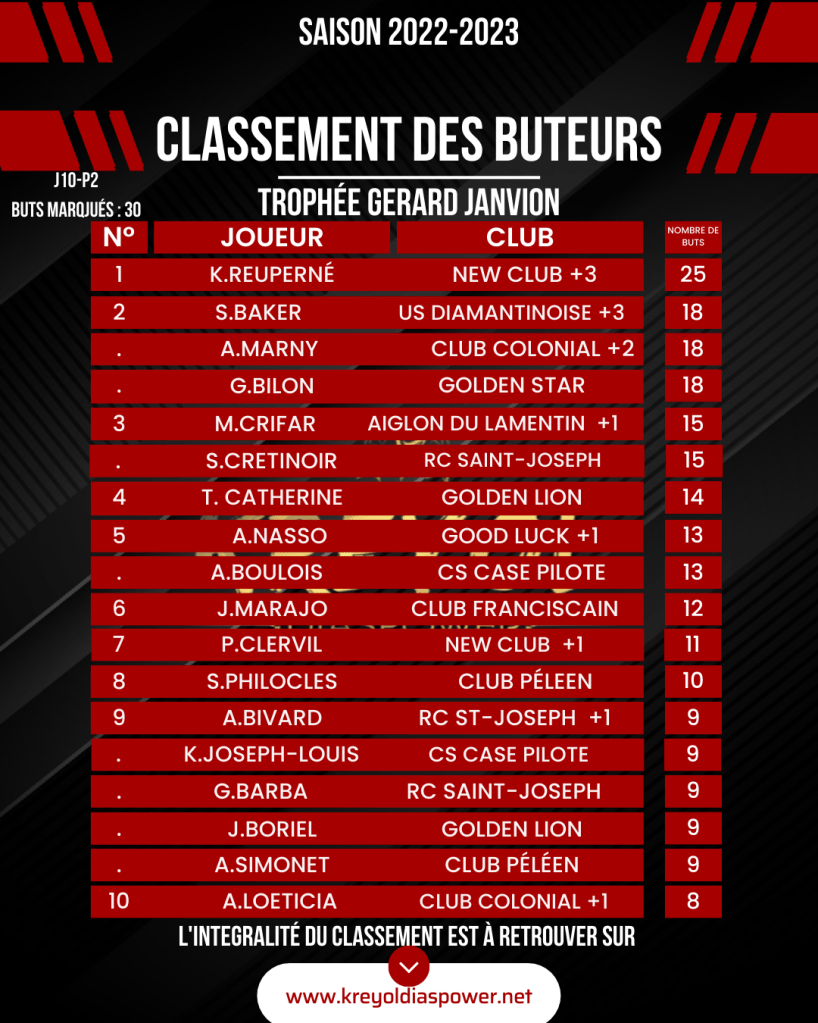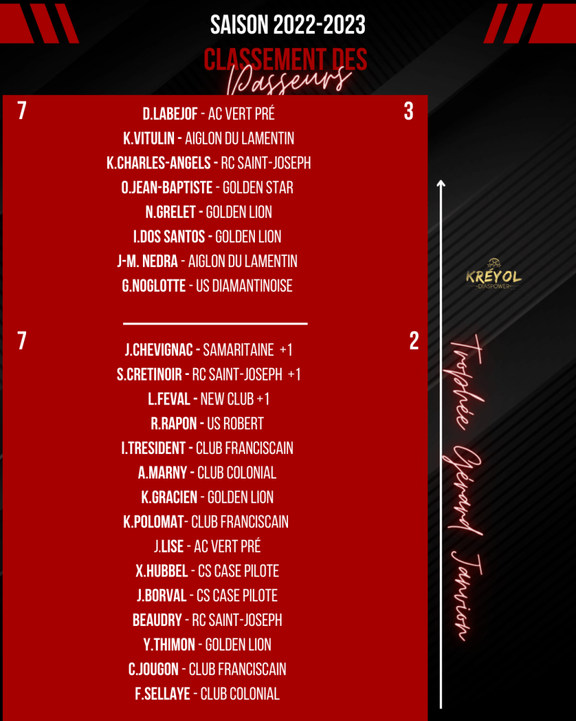 [ Kréyol Football ] : K.REUPERNÉ (buteur), G.PASTEL & T.URSULET (passeurs) finissent en tête !