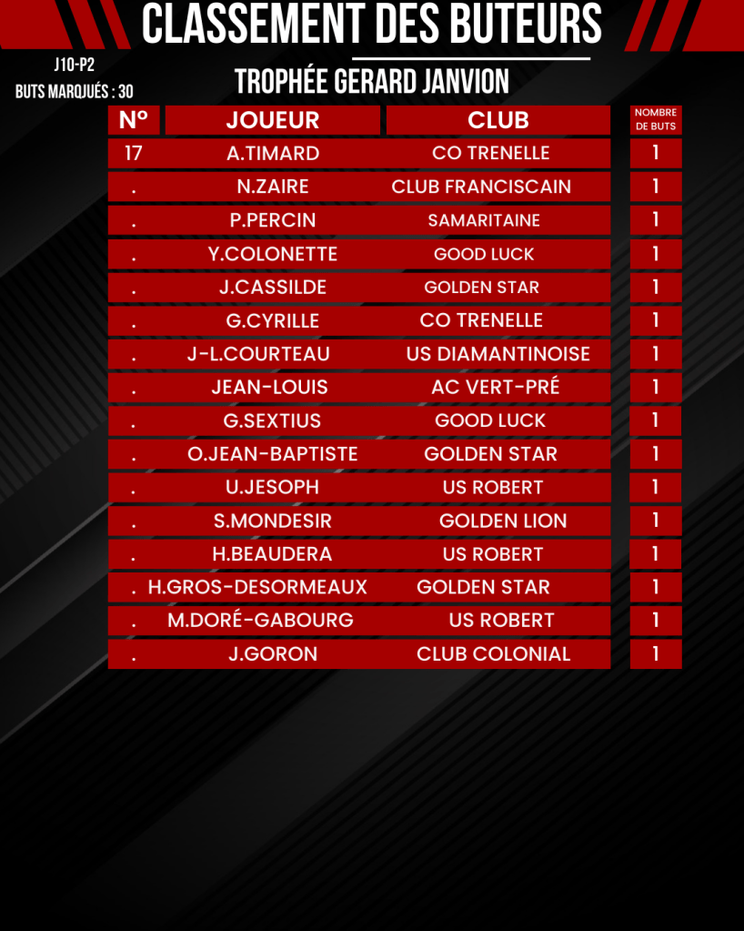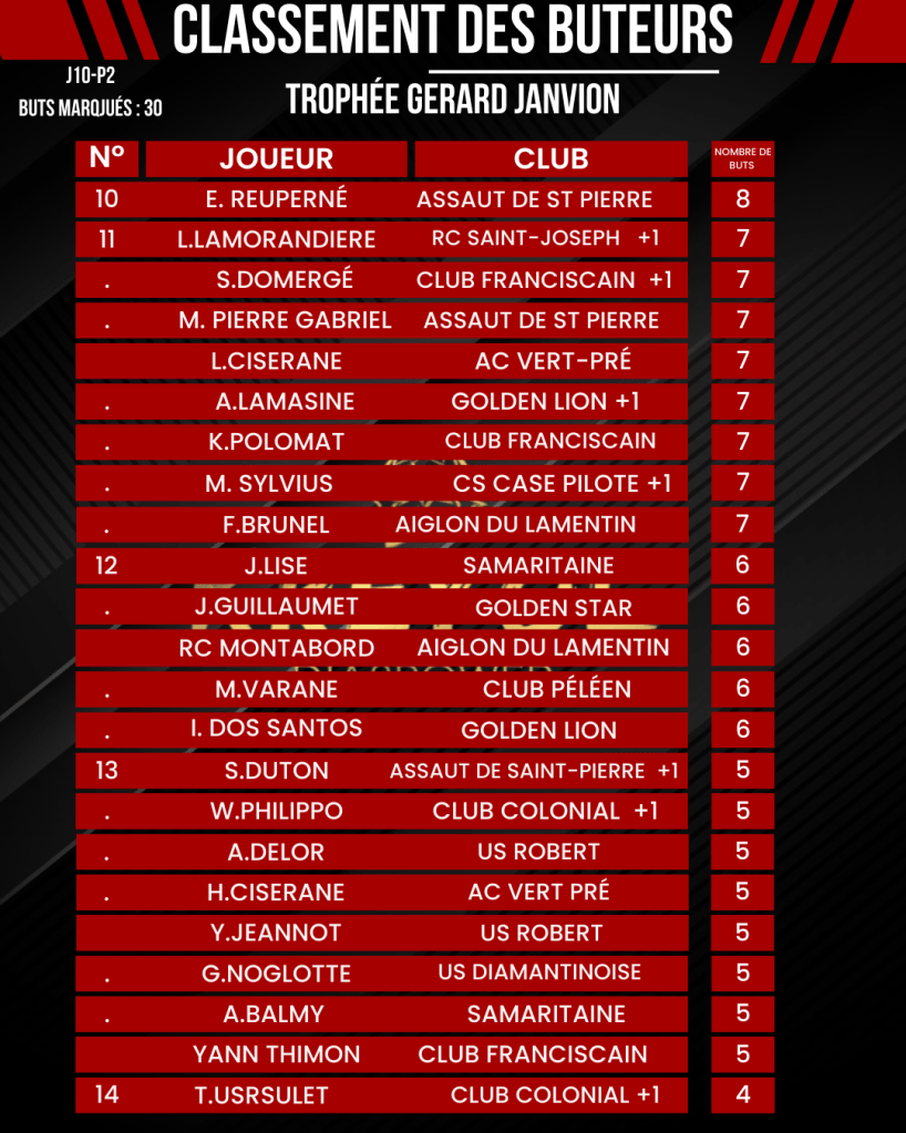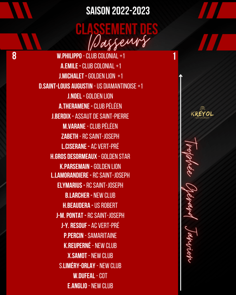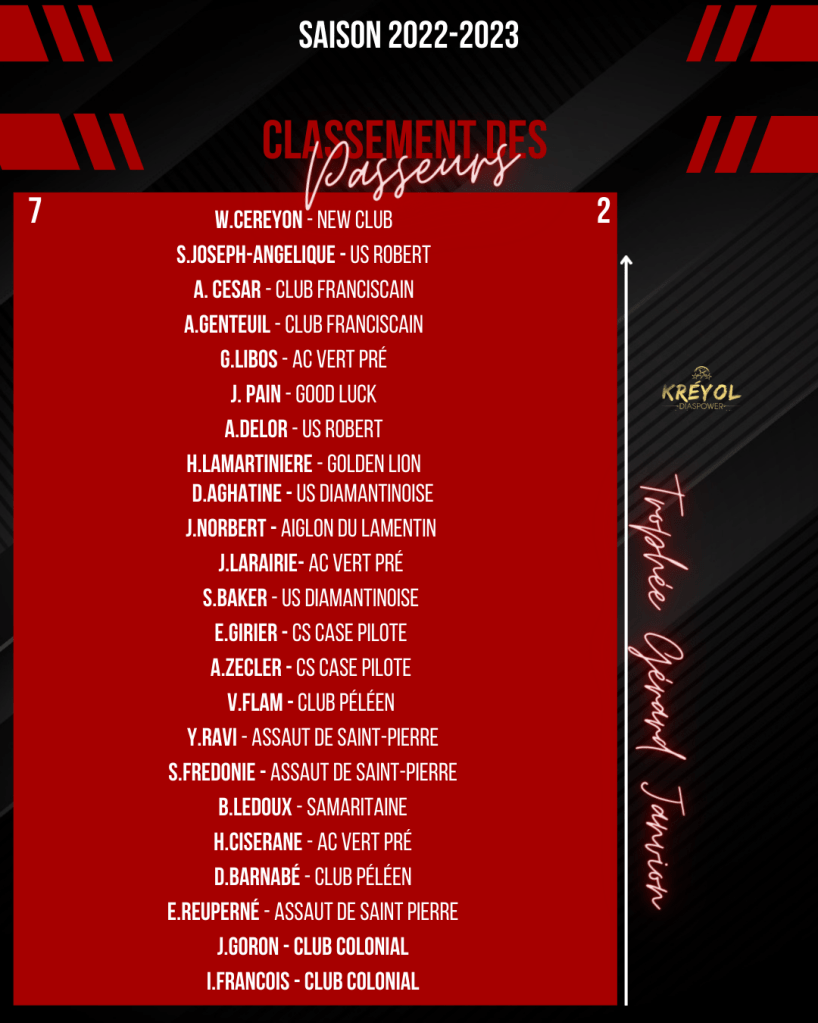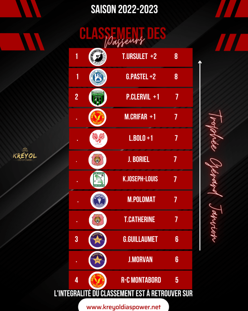 [ Kréyol Football ] : K.REUPERNÉ (buteur), G.PASTEL & T.URSULET (passeurs) finissent en tête !