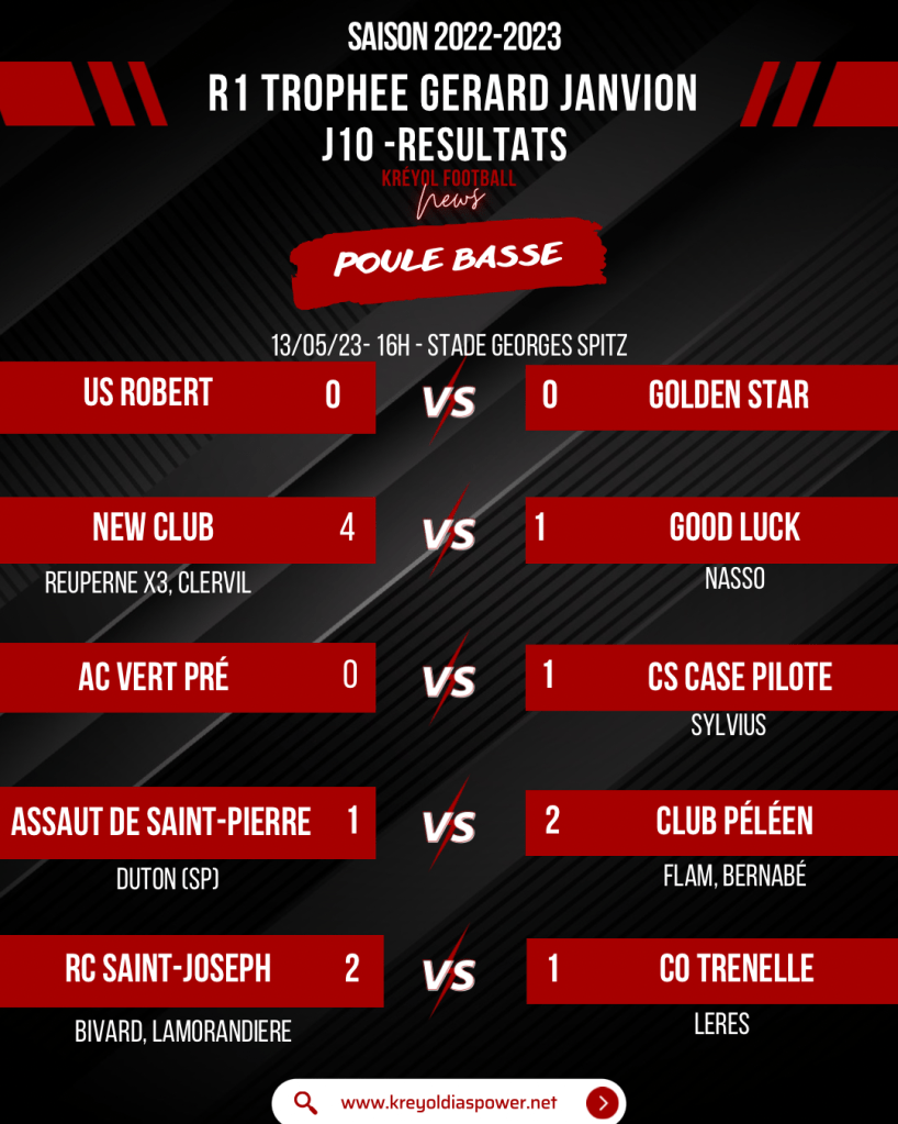 Retrouvez tous les résultats du weekend en Régional 1 ainsi que les classements des buteurs et passeurs KREYOL DIASPOWER !