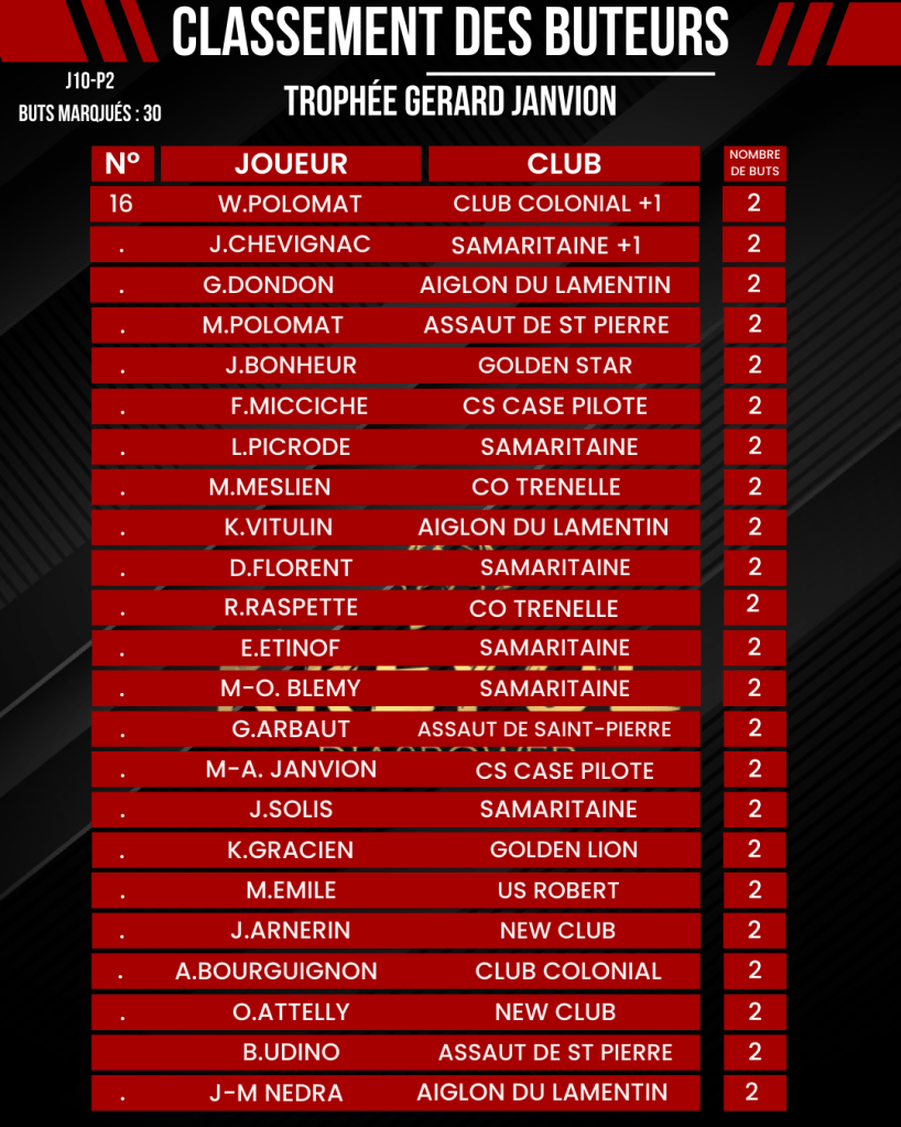 J10- P2 RÉSULTATS & CLASSEMENT