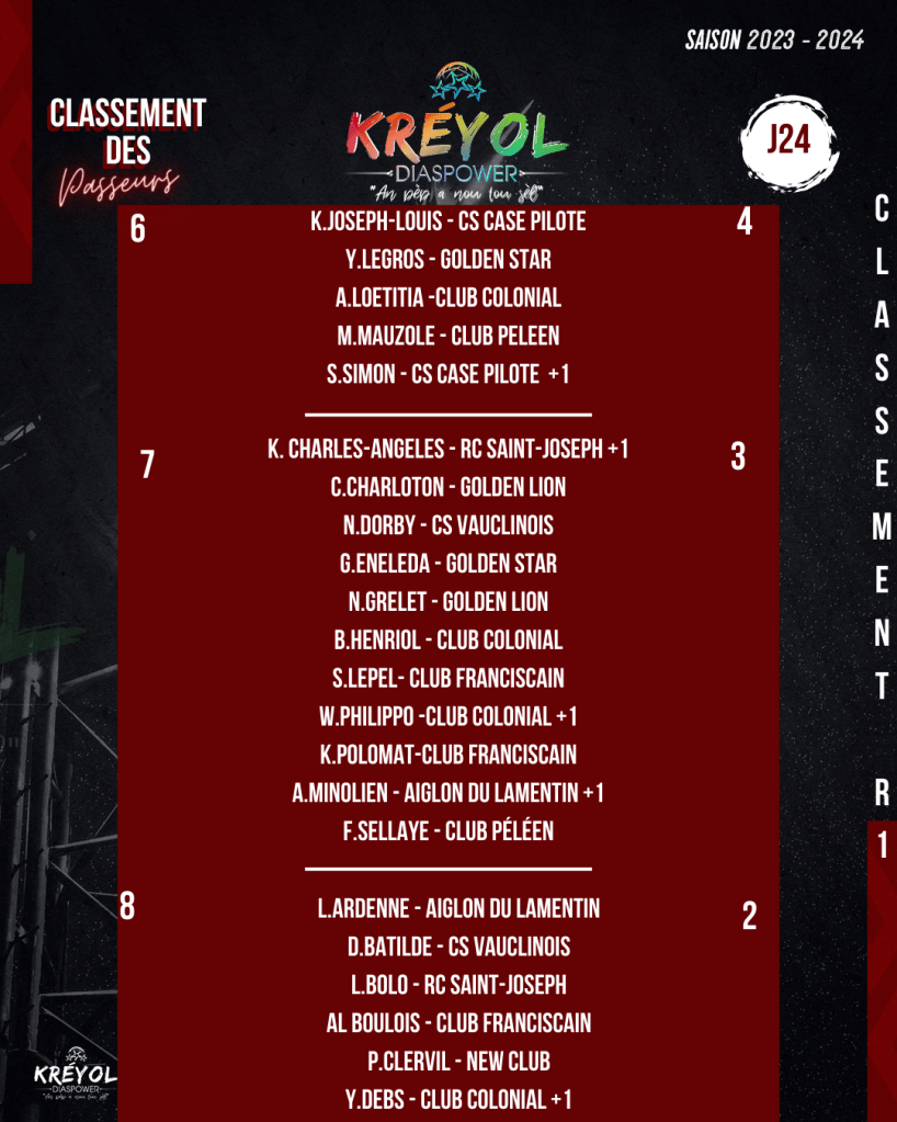 CLASSEMENT DES PASSEURS