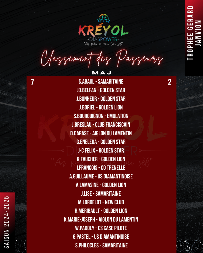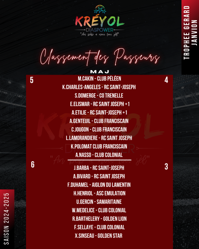 CLASSEMENT DES PASSEURS